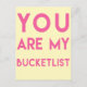 NewParkLane - Carte postale, avec une citation amusante en rose, police moderne : Vous êtes ma liste de bucketlist! Contre un arrière - plan jaune vif. Un design amusant et sucré pour la Saint Valentin - ou à toute autre occasion romantique ;) !