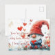 Partagez l'amour et la magie des gnomes à la Saint-Valentin avec une charmante carte postale ! Avec un gnome aquarellé fantaisiste entouré de cœurs colorés, ce design déborde de chaleur et de joie, ce qui en fait la façon idéale d'envoyer des sentiments sincères.