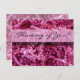 La photographie en gros plan capture des bandes de papier froissé et déchiqueté rose sur le devant de la carte postale avec la même image d'opacité réduite au dos. Personnalisez le texte du modèle avec votre message.