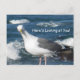 Cet oiseau fantaisiste qui grince son cou pour vous regarder est un goéland occidental, ou Larus occidentalis. Son (ou peut-être le sien); tous les adultes matures ont la même couleur) tête blanche magnifique et contraste mammaire avec les vagues bleu vif et le surf blanc qui s'écrasent à Monterrey, CA. Il a un dos gris, des pointes d'ailes noires avec de petites rayures blanches, un bec jaune et des pattes roses. Contre le bleu de l'eau se trouve la lettre blanche, "Voici qui vous regarde." J'ai pris cette photo pendant l'hiver 2007. Copyright Gail Storrs 2007.