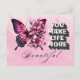 Envoyez un message sincère avec cet élégant papillon et cette carte postale fleurie avec l'expression "You Make Life More Beautiful". L'arrière - plan rose doux et le design délicat des papillons floraux créent une touche chaleureuse et inspirante, parfaite pour penser à vous, encourager, apprécier, ou juste parce que des moments. Qu'il s'agisse d'un ami, d'un être aimé ou d'une personne qui vous éclaire la vie, cette carte postale est une belle façon d'express la gratitude et la positivité. Le dos est vide pour votre message personnel