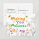 Égayez la journée de quelqu'un avec cette belle carte de prompt rétablissement ! Avec un design joyeux sur le devant orné de fleurs et de papillons, et les mots "Vous souhaite le bien-être ", elle apporte chaleur et positivité. Le verso comprend un message sincère et un espace pour l'adresse du destinataire.