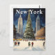 Célébrez la beauté de la ville de New York en hiver avec cette carte postale de voyage. Avec l'arbre du Rockefeller Center, les patineurs et la skyline de Manhattan avec le texte « New York » en gras, cette carte postale fait un excellent souvenir pour les voyageurs, les collectionneurs et les amateurs de NYC.