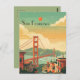 Cette carte postale de voyage présente une illustration sereine et chaleureuse représentant l'horizon de San Francisco avec le Golden Gate Bridge. C'est une carte postale formidable et romantique pour les voyageurs qui prévoient de visiter San Francisco ou pour ceux qui ont voyagé San Francisco et qui envoient une carte postale à leur famille ou à leurs amis.