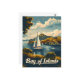 Une description vintage et captivante de la baie des Îles, Nouvelle-Zélande, réputée pour ses paysages côtiers époustouflants et sa signification historique. Le design met en valeur les eaux turquoise immaculées de la baie parsemées d'îles verdoyantes, encadrées de côtes accidentées et de plages isolées. Rendu dans un style nostalgique, l'oeuvre capture la beauté sereine et l'esprit aventurier de cette destination mythique de la Nouvelle-Zélande.