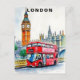 Carte Postale Voyage en bus à Londres au Royaume-Uni aquarelle