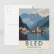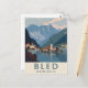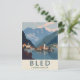 Cette affiche de voyage de style vintage capture le paysage époustouflant de Bled, en Yougoslavie, mettant en vedette l'église et le château emblématiques de l'île sur la colline. L'œuvre d'art utilise un style géométrique simple avec une palette de couleurs atténuées pour évoquer une atmosphère classique et rétro. Ce design est un parfait élément de nostalgie pour quiconque se souvient de la région comme faisant partie de la Yougoslavie ou pour ceux qui apprécient simplement l'art du voyage vintage avec une touche d'histoire.