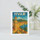 Jetez un coup d'œil à cette superbe illustration rétro colorée sur une carte postale de voyage de la destination de voyage croate de Hvar en Croatie. Ce produit fait un souvenir incroyable pour chaque visiteur et touriste de la ville croate sur la côte adriatique. Personnalisez et achetez maintenant.