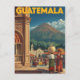 Cette affiche de voyage de style vintage capture magnifiquement la culture vivante du Guatemala. L'aménagement est composé d'une scène de marché animée dans une ville coloniale, avec des gens en robe traditionnelle et un volcan majestueux qui s'élève dans l'arrière - plan. Le style artistique, avec ses couleurs audacieuses et ses formes simplifiées, évoque l'atmosphère classique et nostalgique de la publicité de voyage du milieu du siècle.