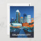 Illustration captivante de l'horizon d'Oklahoma City la nuit. L'image montre les bâtiments emblématiques de la ville illuminés par un ciel étoilé, avec le reflet des lumières scintillant sur les eaux calmes en contrebas. Le design évoque un sentiment de tranquillité et de beauté urbaine.