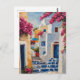 Vue imprenable sur Oia, y compris les escaliers en pavé et les fleurs de bougainvilliers en cascade.
