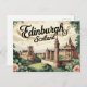Cette carte postale vintage présente le charme historique d'Édimbourg, en Écosse, avec ses rues médiévales, ses toits de château et ses collines brumeuses. Conçu dans des tons chauds et rétro, il est parfait pour les amoureux du patrimoine écossais, de la beauté de l'ancien monde et des souvenirs de voyage intemporels.