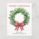 Carte Postale Watercolor Green Wreath With Red Gingham Bow