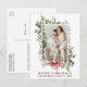Elegant Watercolor Winter Greenery Merry Christmas Holiday Photo Postcard includes eucalyptus leaves and red holly berries. Red Bow Ribbon.