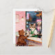 Carte Postale Watercolor Tabby Cat Barista Serving Bear