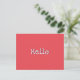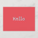 Dans un beau rouge pastèque, cette carte postale chic est chic et simple. Le libellé par défaut sur le devant est un simple "Hello", mais vous pouvez personnaliser la carte avec vos propres mots si vous préférez. Le verso de la carte est vide pour votre propre message.