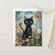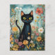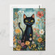 Carte Postale Whimsical Black Cat avec illustration Fleur sauvag