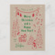 Célébrez la magie de la saison avec notre carte postale de Noël Whimsical Kraft Paper! L'avant présente des gribouillis de doodles rouges de vacances dressés contre un arrière - plan en papier kraft simulé, avec des arbres de Noël ludiques, un bonhomme de neige joyeux, de mignons pingouins, des cadeaux emballés, des sucres de canne, des menthe poivrées succulentes, des hommes en pain d'épice, des bas douillets et deux colombes accrochées à une corde pop-corn. Le message vert et audacieux, "Ayez un très joyeux Noël et une bonne année !" brille de façon éclatante, tandis que votre nom de famille peut être ajouté dans une police de script décontracté pour une touche personnalisée. Des flocons de neige blancs éparpillés complètent le look festif, ce qui rend cette carte postale parfaite pour envoyer des voeux chaleureux à des amis et à la famille. Le thème festif se poursuit sur le dos avec une subtile saupoudrée de bonbons de menthe poivrée et de biscuits de pain d'épices, liant les deux côtés dans un design de vacances délicieux. De plus, le dos comprend des modèles de texte pratiques pour l'adressage, les noms personnels et un message étendu, ce qui vous permet de customiser et de partager vos salutations sincères. Envoyez la joie des vacances avec cette carte postale unique et pleine de charme qui égayera n’importe quelle boîte aux lettres!