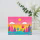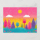 Carte postale Whimsical Sunset Forest, Carte postale Vibrant Illustrated Nature, Art de la nature colorée, coucher de soleil et arbres rêvés