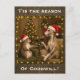 Brindle Whippet dog and squirrel Christmas holiday greetings postcard.