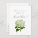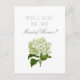 Carte de proposition pour la bonne d'honneur de votre fête de mariage, cette carte blanche propre présente une illustration antique d'hydrangée verte et blanche avec un texte classique et facile à personnaliser vous permettant de choisir comment "proposer" aux membres de votre fête de mariage.
