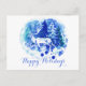 Belle aquarelle de Noël avec rennes d'hiver blanc courant dans la forêt de conifères enneigés aux couleurs bleues festives. Des plaques décoratives de peinture et des touches expressives remplissent cette oeuvre d'énergie et d'ambiance de vacances classique. Aquarelle de l'artiste Zaira Dzhaubaeva. Le texte peut être personnalisé ou remplacé. Ajoutez simplement votre nom !
