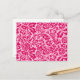 Carte postale dans un motif de damas floral vintage William Morris, numériquement amélioré et coloré, en rose fuchsia profond sur un fond rose pastel