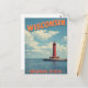 Celebrate the beauty of the Badger State with this vintage-inspired Wisconsin postcard. Featuring a striking red lighthouse under bright blue skies, it captures the peaceful charm of the Great Lakes. Perfect for travelers, collectors, or fans of coastal and nautical art — great for mailing, framing, or gifting.