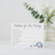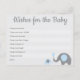 Our blue and gray elephant themed baby shower Wishes for Baby Cards are a sweet activity to have at baby shower. The cards have phrases that guests can fill in like "I hope you always..." et "I hope you learn to..." If you'd like, you can easily personalize the cards to use the baby's name in the heading or change the phrases for the wishes before adding the cards to your cart.