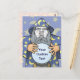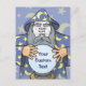 Vieux sorcier avec cape bleue et boule de cristal magique. Utilisez la photo du visage pour customiser. Texte personnalisé.