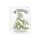 Libérez l'esprit de l'Ouest américain avec cette puissante carte postale souvenir de voyage du Wyoming "The Equality State" ! Avec des illustrations gravées de style vintage qui capturent parfaitement l'indépendance robuste du Wyoming. Ce design iconique met en valeur le célèbre symbole de l'État, le cheval et le cavalier bucking du Wyoming, symbole de l'esprit sauvage et de la tradition du rodéo, ainsi qu'un crâne de bison symbolique, sur un paysage rocheux dramatique.