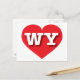 Cette carte postale est dotée d'un coeur rouge vif contenant les lettres coques WY, en haut blanc et audacieuses, l'abréviation officielle du Wyoming, l'état cowboy. Le revers de la carte postale est vide, en attendant votre texte personnalisé ou vos sentiments manuscrits.