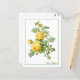 A postcard showcasing Rosa Sulfurea, or the Sulphur Rose, features a stunning botanical illustration of yellow roses by Pierre-Joseph Redouté (1759–1840). Known as the Raphael of Flowers, Redouté was the official court artist to Queen Marie Antoinette, and this piece is one of his masterpieces.