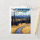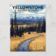 Celebrate the rugged beauty of Yellowstone National Park with this captivating vintage-style postcard. The design features a winding river cutting through golden grasslands, framed by towering pine trees, and set against a backdrop of stunning snow-capped mountains and a bright blue sky. This artwork evokes the classic WPA-style travel posters and is perfect for nature lovers, hikers, and anyone who appreciates American wilderness. Ideal for sending as a greeting, keeping as a souvenir, or framing as a piece of rustic wall art.