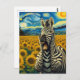 Carte Postale Zèbre hurle dans un champ de tournesols
