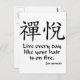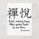 Kanji pour la joie zen avec le proverbe bouddhiste zen, "Vis tous les jours comme si tes cheveux étaient en feu".