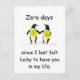Des manchots fantaisistes en gilets haute visibilité donnent une touche romantique au classique panneau de sécurité industriel "Zéro jour". Caractéristiques du texte : "Zéro jour depuis que j'ai ressenti pour la dernière fois de la chance de t'avoir dans ma vie." C'est un cadeau drôle et doux, parfait pour les partenaires de construction, de conformité en matière de sécurité ou pour quiconque garde votre vie sur la bonne voie.