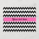 Motif de chevron en zigzag noir et blanc personnalisé. Au milieu, il y a un groupe rose chaud où vous pouvez ajouter votre propre texte.