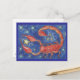 Scorpio, le scorpion, est entouré d'étoiles brillantes. Eau, 24 octobre - 22 novembre (il peut y avoir une variation dans les dates). Carte postale avec un design personnalisable orange, rouge, bleu et jaune pour vous permettre de personnaliser avec votre propre texte, images et idées. Un crayon de couleur originale et un dessin à l'encre métallique de Jess Perry.
