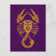 Carte Postale Zodiaque Scorpio Jaune complexe sur violet