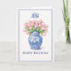 Célébrez-la avec le charme intemporel de l'esthétique Grandmillennial. Cette élégante carte d'anniversaire présente un classique pot à gingembre en bleu et blanc de style Chinoiserie rempli de tulipes roses douces. Avec sa bordure traditionnelle festonnée et sa typographie serif sophistiquée, c'est le choix parfait pour une mère, une sœur ou une amie qui aime le style prépa et classique. Entièrement personnalisable - ajoutez un monogramme ou un nom sur le devant et un message personnel à l'intérieur via l'outil de conception de Zazzle.