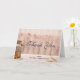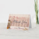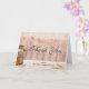 Carte de remerciement pour mariage ou autre fête, événement, occasion, etc. Conçue avec un thème champêtre rustique. Un vieux pot à lait rouillé avec une jolie fleur jaune à ses côtés. Blé et fleurs roses délavées en arrière-plan sur un panneau de bois légèrement visible.