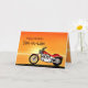 Une moto semblable à une Harley debout au bord de la mer avec un glorieux coucher de soleil orange. Une grande carte pour tous ceux qui aiment le vélo et les motos.Voir toute la gamme de cartes pour les âges et les relations dans mon magasin. Toutes les oeuvres d'art copyright Norma Cornes