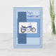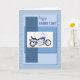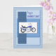 Une excellente carte pour la fête des pères. Une moto bleue sur un fond bleu abstrait. Le recto indique "Joyeuse fête des pères". Une excellente carte pour quelqu'un qui est un passionné de moto. Les textures sur le recto de cette carte sont imprimées.