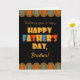 Une carte de Fête des pères design pour votre frère, dans un style Art déco. Le message d'accueil à l'avant est : "Je vous souhaite une FÊTE DES PÈRES très HEUREUSE, Frère !" en rouge vif, bleu et jaune doré sur un arrière - plan noir. Il y a des motifs Art Déco incurvés en haut et en bas et le message intérieur est juste une suggestion que vous pouvez facilement changer ou supprimer complètement si vous le souhaitez.