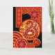 Nouvel An chinois du serpent, carte de voeux en papier avec un serpent en rouge et or. Une bannière verticale avec des salutations du Nouvel An chinois, des cercles concentriques et des chrysanthèmes sont présentés dans le design. Copyright © Shoaff Ballanger Studios, 2024.