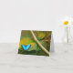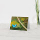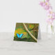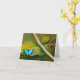 LA CARTE COMPORTE LA PHOTO DU PAPILLON BLEU DE MORPHO SE REPOSANT SUR UNE FEUILLE DE VERT ET D'OR. LA CARTE EST INTÉRIEUR VIDE POUR VOTRE PROPRE MESSAGE.