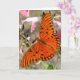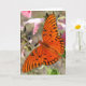 Le papillon de fritillaire de Golfe boit du nectar des fleurs roses de salvia sur ce carte pour notes