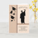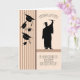 Carte pour un diplôme en administration des affaires. Le design est dans les couleurs du diplôme, avec une rangée de rayures dans brun moyen et bronzé, avec une silhouette d'un diplômé masculin sur le côté droit de la carte. Le côté gauche a des bouchons de graduation en position de chute. Conception parfaite pour le but. Merci à Coffee Shop Blog et le Hungryjpeg pour certains des éléments dans le design.