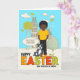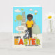 Ce petit garçon n'est-il pas adorable dans son tee-shirt et son jean noir, debout avec son trop mignon chiot gris et blanc sur ce thème printanier aux couleurs vives et audacieuses pour votre jeune filleul ?